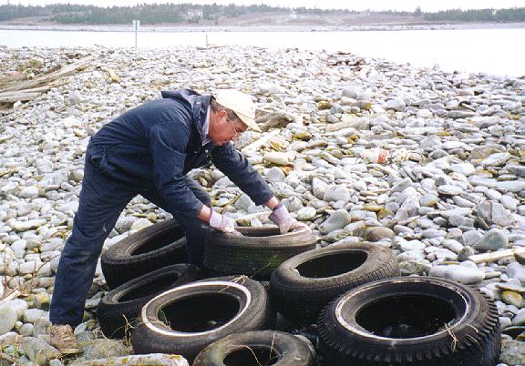 April 29, 2000 - My cousin, Andrew D'Eon, and my daughter, Ingrid, helped me fix up a number of Roseate Tern nest shelters on the Brothers. We also cleared the Roseate Tern nesting area of dead plant material from last year's growth.