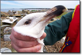 May 22, 2002 - I returned to N. Brother with Franklyn and Jean-Bernard d'Entremont, and Nils Jorgensen, to remove the gull. It was still there and easily captured. Nils was in West Pubnico visiting from Denmark.