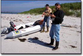 July 3, 2002 - Roseate Tern chick banding on The Brothers.