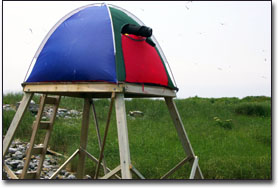 After the nest and chick count, I set up my my blind on top of the observation platform and checked out the birds with the spotting scope on loan from Canadian Wildlife Services (CWS).