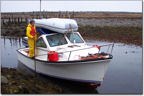 | Rémi d'Entremont on the Royalsea-23 at Flat Island, May 18, 2002 |