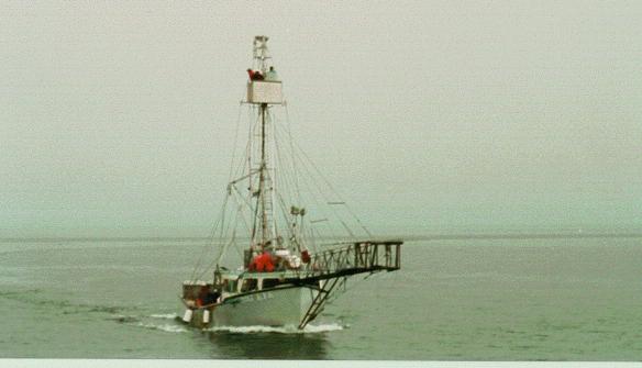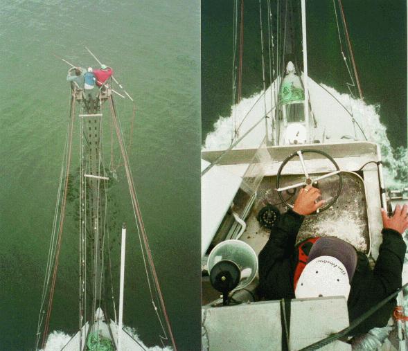 On the second day there was no spotter plane, and Gérard with the aid of Harland, Gerald, Cecil, and Nigel at different times on top of the mast, would scan the horizon for tell-tale signs of tuna activity at the surface of the water. These signs were usually small flocks of gulls and shearwaters feeding at the surface. These birds would be attracted to the leftovers of herring and mackerel from the tuna feeding frenzy.